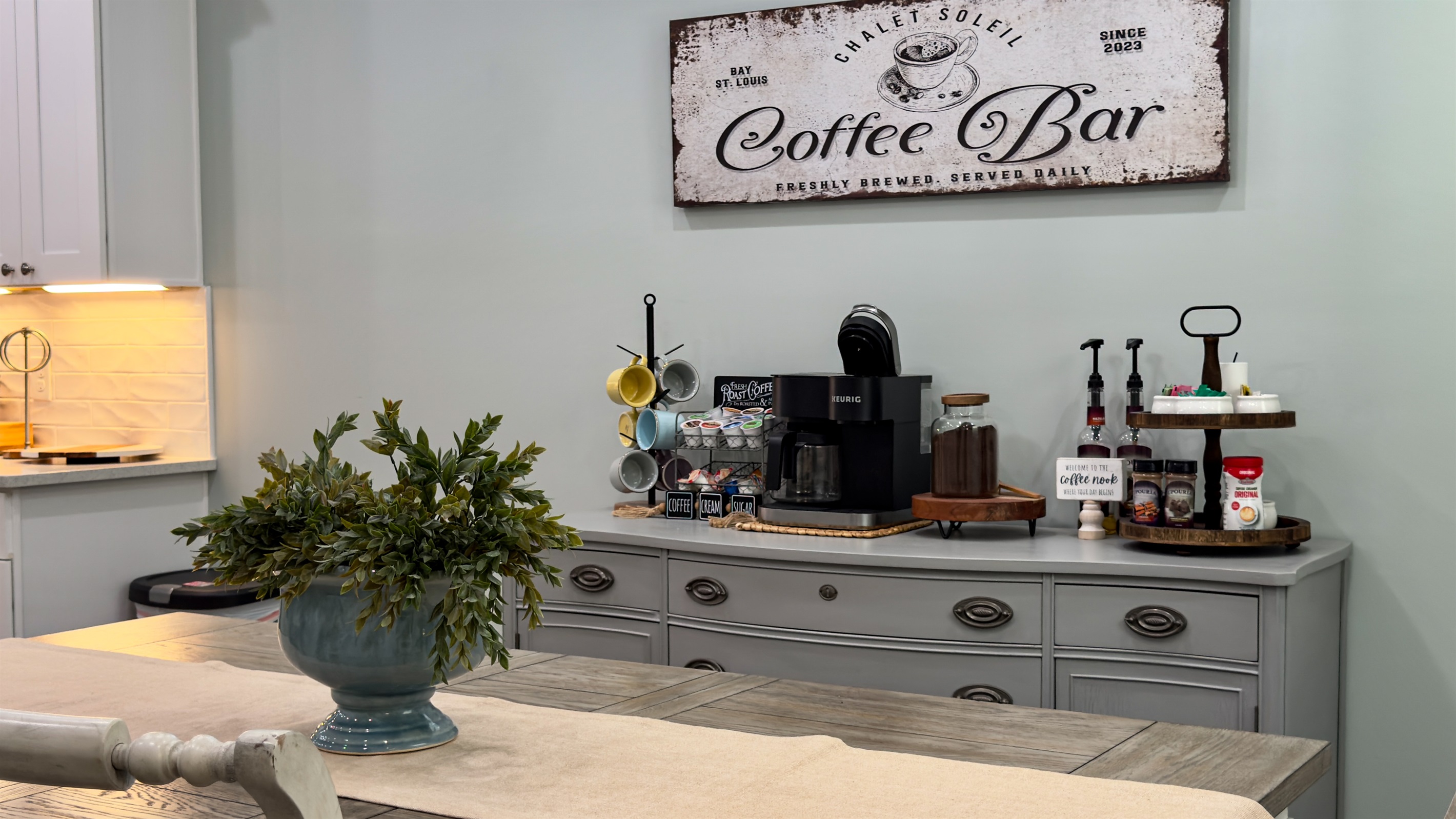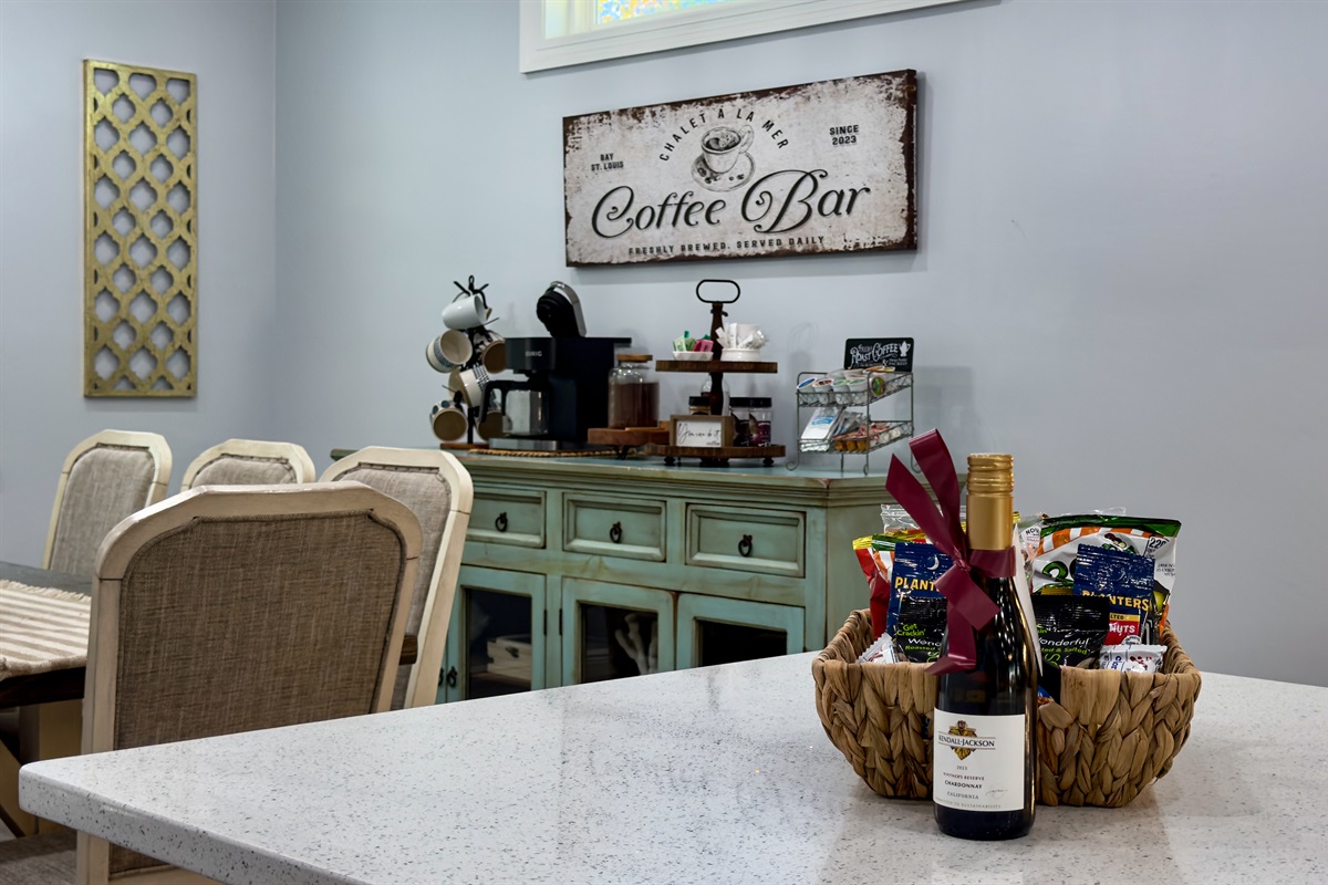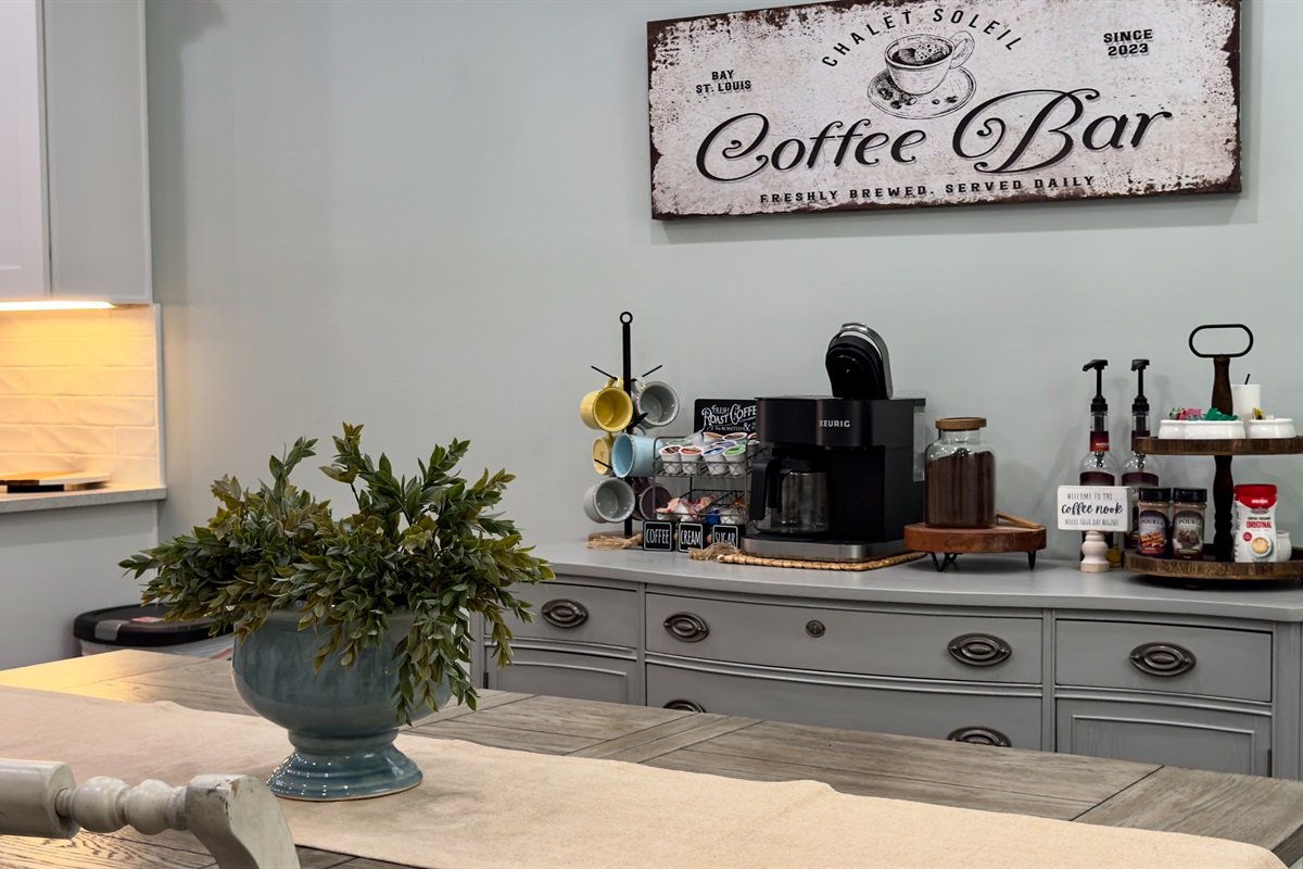 One of many fully stocked coffee bars for the ones that need a little caffeine in the morning before they're fun to be around!